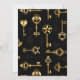 Seamless pattern of antique, gold and silhouette keys on black background.