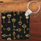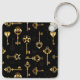 Seamless pattern of antique, gold and silhouette keys on black background.