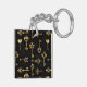 Seamless pattern of antique, gold and silhouette keys on black background.