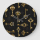 Seamless pattern of antique, gold and silhouette keys on black background.