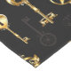 Seamless pattern of antique, gold and silhouette keys on black background.