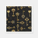 Seamless pattern of antique, gold and silhouette keys on black background.