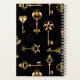Seamless pattern of antique, gold and silhouette keys on black background.