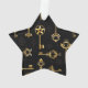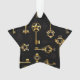 Seamless pattern of antique, gold and silhouette keys on black background.