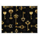 Seamless pattern of antique, gold and silhouette keys on black background.