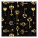 Seamless pattern of antique, gold and silhouette keys on black background.