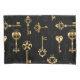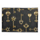 Seamless pattern of antique, gold and silhouette keys on black background.