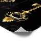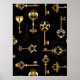 Seamless pattern of antique, gold and silhouette keys on black background.