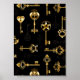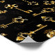 Seamless pattern of antique, gold and silhouette keys on black background.