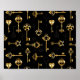 Seamless pattern of antique, gold and silhouette keys on black background.