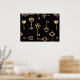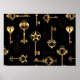 Seamless pattern of antique, gold and silhouette keys on black background.