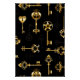 Seamless pattern of antique, gold and silhouette keys on black background.