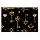 Seamless pattern of antique, gold and silhouette keys on black background.