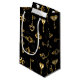 Seamless pattern of antique, gold and silhouette keys on black background.