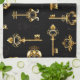 Seamless Pattern with Golden Keys Tea Towel