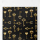 Seamless pattern of antique, gold and silhouette keys on black background.