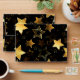 Seamless with Golden Stars on Black background. Gold star.