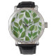Seamless Pattern with Green Tea Leaves Watch