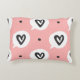 Repeating round dots and bubbles of speech with outlines of hearts. Cute seamless pattern drawn by hand with a rough brush. Sketch, watercolour, paint. Vintage illustration. Pink, white, black.