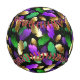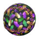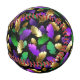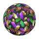 Seamless pattern of bright purple, green, and gold feathers on black Mardi Gras background. Design for the Mardi Gras holiday.