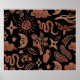 Seamless pattern with mystical and magic symbols. Stock illustration with snake, sun, moon, crystal, stars and rose