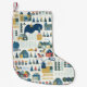 Seamless pattern with scandinavian village in past small christmas stocking
