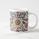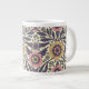 This giant mug features flowers and leaves in shades of pink and blue on a cream-coloured background.