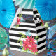 Seamless pink flowers floral black white striped l favour box