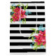Seamless pink flowers floral black white striped lined pattern print