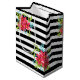 Seamless pink flowers floral black white striped l medium gift bag
