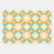 Seamless retro pattern with rounded squares in peach, teal, and cream hues, outlined in orange. Mid-century modern style, conveying a vintage, playful tone.