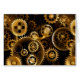 Seamless, metal, brass, gold gears on rusty dark background. Steampunk style.