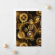 Seamless, metal, brass, gold gears on rusty dark background. Steampunk style.