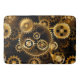 Seamless, metal, brass, gold gears on rusty dark background. Steampunk style.