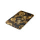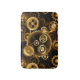 Seamless, metal, brass, gold gears on rusty dark background. Steampunk style.