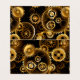 Seamless, metal, brass, gold gears on rusty dark background. Steampunk style.