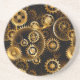 Seamless, metal, brass, gold gears on rusty dark background. Steampunk style.