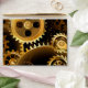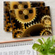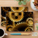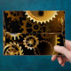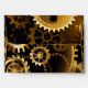 Seamless, metal, brass, gold gears on rusty dark background. Steampunk style.