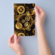 Seamless, metal, brass, gold gears on rusty dark background. Steampunk style.