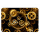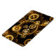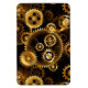 Seamless, metal, brass, gold gears on rusty dark background. Steampunk style.
