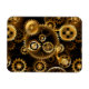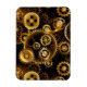 Seamless, metal, brass, gold gears on rusty dark background. Steampunk style.