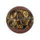 Seamless, metal, brass, gold gears on rusty dark background. Steampunk style.