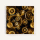 Seamless, metal, brass, gold gears on rusty dark background. Steampunk style.