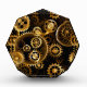 Seamless, metal, brass, gold gears on rusty dark background. Steampunk style.