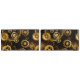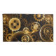 Seamless, metal, brass, gold gears on rusty dark background. Steampunk style.