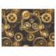 Seamless, metal, brass, gold gears on rusty dark background. Steampunk style.