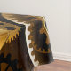 I am very pleased with this purchase. The quality is good, it is heavy and the image decorating it is brilliant and very eye-catching. When I first laid eyes on this tablecloth, still folded and in the transparent covering, it brought a smile to my face and I knew right away it was a good choice. A few days later my wife replaced our old tablecloth with this little gem and was quite satisfied. She noted that it is thick and fits the table very well with just enough hang over (although our dining table is extended by a traditional leaf which we keep in place even if we are not having guests over) and stays put instead of blowing all over the place. The image decorating this tablecloth is brilliant and very eye-catching. It looks even better than it appeared online.