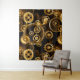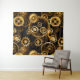 Seamless, metal, brass, gold gears on rusty dark background. Steampunk style.