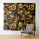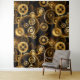 Seamless, metal, brass, gold gears on rusty dark background. Steampunk style.