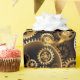 Seamless, metal, brass, gold gears on rusty dark background. Steampunk style.